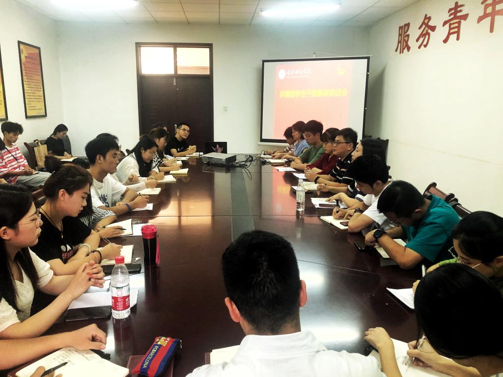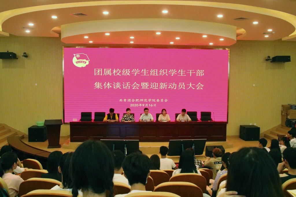 本网讯 9月11日和9月23日,院团委分别在锦绣校区共青之家和滨湖校区学术报告厅召开共青团主要学生干部集体谈话会暨迎新动员大会,院团委全体人员、团委所属学生组织主要学生干部出席会议。