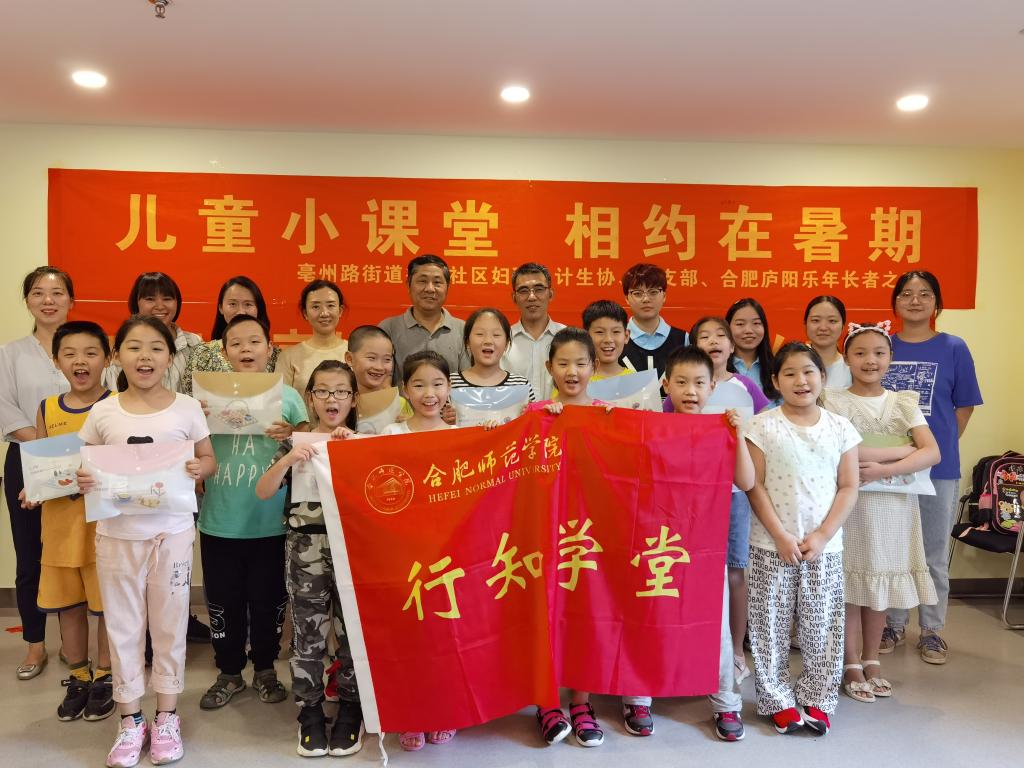 本网讯 7月27日下午,经济与管理学院党委书记沈辉、副书记陶敏和分团委书记赵燕一行来到庐阳区鲁园社区党群服务中心,看望和慰问在这里开展行知学堂的小先生和小学员们。