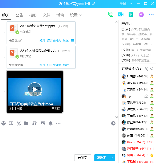 音乐学院各年级、各班开展线上主题班会传递资助政策与诚信教育,在主题班会中,一是加强资助宣传,引导学生在申请国家助学贷款、国家助学金等国家音乐学院开展资助项目时,恪守诚信,如实承诺,真实填报申请材料。共同观看助学贷款宣传片,学习宣传手册与ppt,班主任进行讲解与案例分析;二是开展诚信教育,针对即将到来的网络期末考试,进行“云上”诚信考试承诺书的签订。进一步培养学生诚实守信、遵纪守法的优良品格和作风。