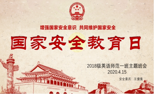 本网讯 4月15日是第5个全民国家安全教育日,为激发学生的爱国主义情怀,提高学生国家安全意识,增强国家安全责任,外国语学院组织各班学生举行了线上“国家安全教育日”主题班会。此次主题班会以集中学习、讨论、征集安全口号及顺口溜、谈心得体会等形式进行活动开展。
