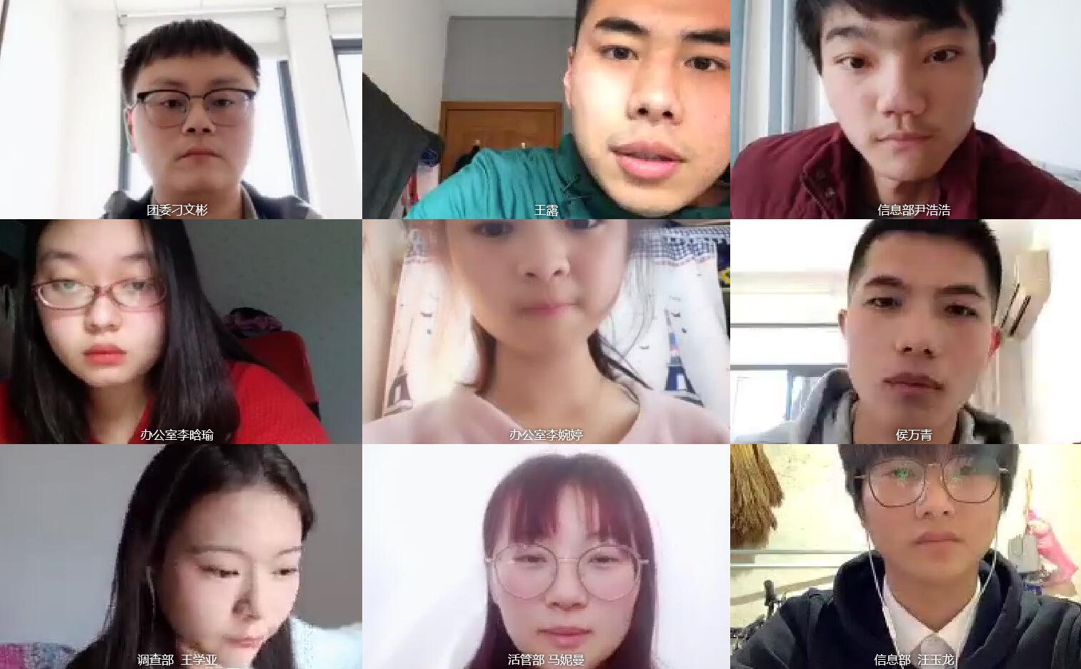 本网讯 3月18日中午,院团委学生组织“第二课堂”学分认证中心在线上召开2020年第一次全委会暨新学期工作部署会议。院团委副书记刁文彬,“第二课堂”学分认证中心全体成员参加会议。“第二课堂”学分认证中心指导教师、院团委宣传思想部王露主持会议。
