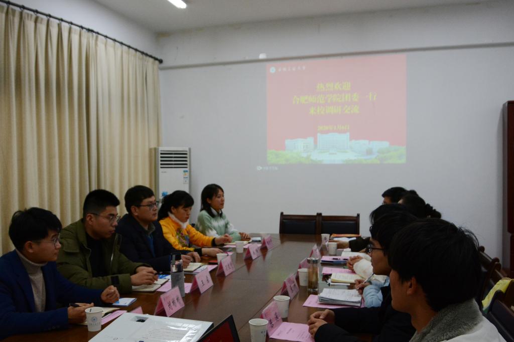 1月10日,院团委一行在安徽农业大学学习调研。安徽农业大学团委副书记任琪主持座谈会,双方交流了各自学校共青团工作基本情况和特色做法。随后,安徽农业大学团委素质拓展中心主任吕莎莎就安徽农业大学“第二课堂”成绩单制度的实施背景、制度建设、具体做法等方面做了详细介绍,双方还围绕学生会改革、团干部队伍建设等进行了交流。(院团委)