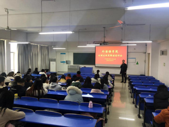 本网讯 12月27日下午,外国语学院于逸夫楼A206举办了公务员选调生政策解读宣讲会,辅导员方媛老师,15级毕业生胡正阳,16级党员同学,17级与18级部分同学参加了会议。