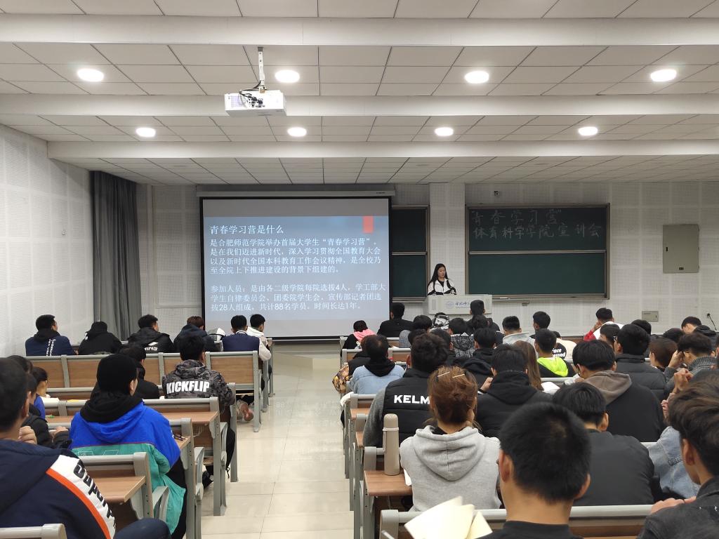 本网讯 为了帮助2019级新生更好地了解“青春学习营”,11月17日晚上,体育科学学院在滨湖校区博学楼A108教室开展“青春学习营”主题宣讲活动。此次活动由首届“青春学习营”学员2017级运动训练专业麻艳雯同学主讲,体科院2019级全体新生参加。