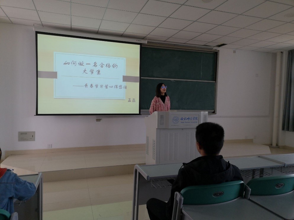 本网讯 为帮助新生更好地了解青春学习营,数学与统计学院于11月13日在滨湖校区博学楼C203教室举行首届青春学习营宣讲活动,本次活动的宣讲者是2017级数学与应用数学专业的孟磊同学,2019级全体新生们参加了宣讲会。