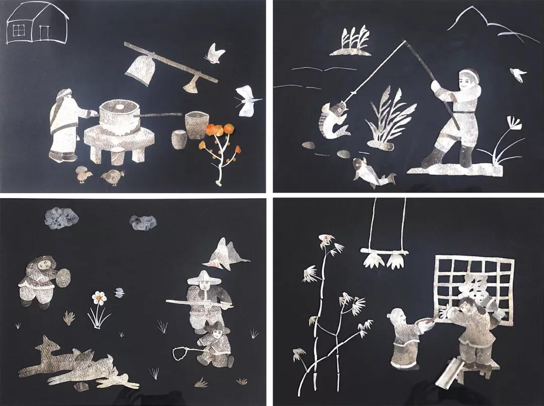 经过两个小时激烈的比拼之后,创意组作品《渔牧生活》荣获本次大赛一等奖。《渔牧生活》是同学们把鱼皮经过特殊处理,塑造出古代人春夏秋冬的生活状态:推磨,垂钓,打猎,迎新四种生活图景,蕴含了古代传统文化。选择使用鱼皮这样特殊的原材料,精雕细琢成四幅精美的图画,这样的选择和创意,它背后反应出的是同学们的创新意识和求精态度。