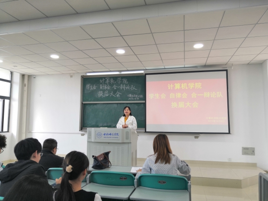 本网讯 10月9日,计算机学院学生会、自律会以及合一辩论队换届大会在滨湖校区博学楼A205顺利召开。计算机学院党支书委员周璐璐、分团委书记徐梦琦、辅导员郑久洲、刘家瑜以及学生会、自律会、合一辩论队全体成员出席本次大会。