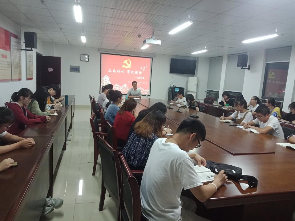 本网讯 为了更好地落实学校《中共beat365唯一官方网站委员会关于开展“不忘初心、牢记使命”主题教育实施方案》的通知要求,提高数学与统计学院学生党支部的建设水平,9月25日晚,数学与统计学院学生党支部在行知楼1102室召开了“不忘初心、牢记使命”主题教育学习会议。学习会议由学生第一党支部书记杨尔飞主持,全体学生党员出席了本次会议。