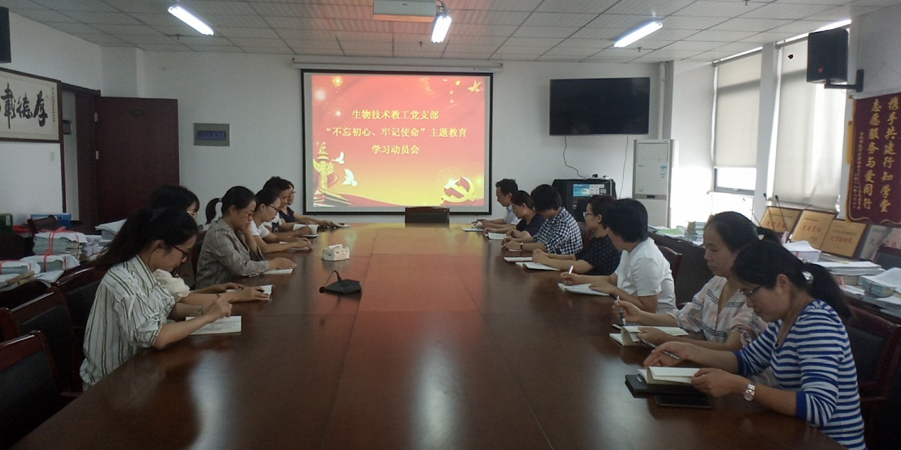本网讯 根据学校《关于开展“不忘初心、牢记使命”主题教育实施方案》和生命科学学院党总支的部署要求,9月25日下午,生命科学学院生物技术教工党支部开展“不忘初心、牢记使命”主题教育学习动员会并进行第一次集中学习交流研讨会。