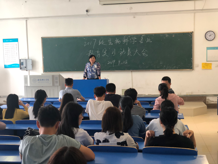 本网讯 为提高学生对教育实习工作的重视,以饱满的热情投入到实习当中。生命科学学院于9月18日在逸夫楼A101举行了17级生物科学师范班教育实习动员大会。院长徐忠东教授、副院长朱桂兰教授、教育实习的指导老师以及17级生科师范班全体学生参加了本次会议,会议由生物科学系主任孙娴主持。