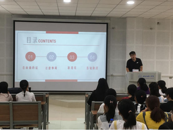 接着朱儒进为新生召开2019级新生“开学第一课”。要求各位新生能够讲规则,守纪律,严对己,宽待人。提醒新同学们在大学生活中的注意事项。希望每个新生成为一个拥有根植于内心的修养、无需提醒的自觉、以约束为前提的自由和为别人着想的善良的有文化的青年人。(外国语学院)
