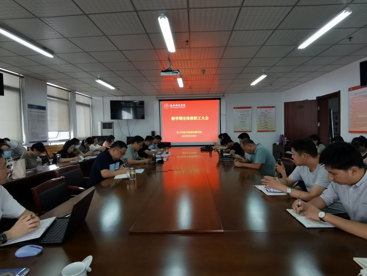 本网讯 为全面做好秋季学期开学工作,确保新学期开好局起好步,保证各项工作平稳有序进行,8月30日下午,电子信息与集成电路学院在行知楼1210会议室召开新学期全体教职工大会。会议由学院党委副书记、院长张忠祥主持,全体教职工参加会议。