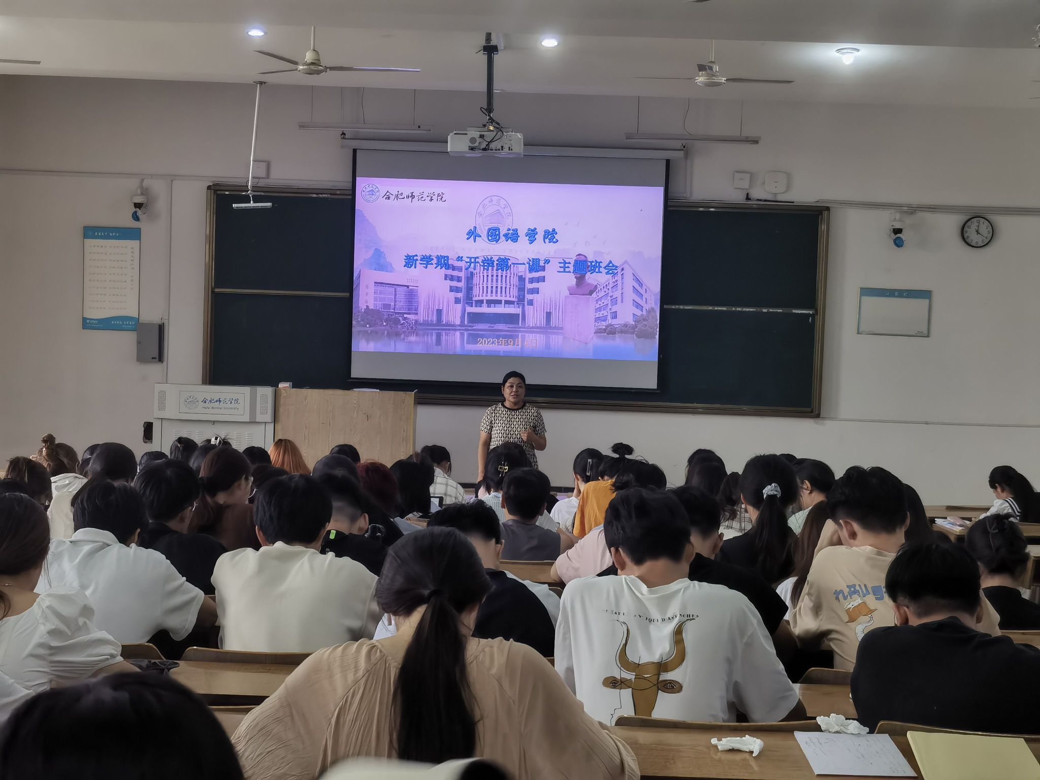 本网讯 为加强学生思想政治教育,进一步做好新学期学生日常管理工作,引导学生以崭新面貌投入到新学期的学习生活中,9月4日至7日,外国语学院各年级辅导员组织召开新学期“开学第一课”主题班会,班会内容围绕“三个突出”,努力为同学们扣好新学期“第一粒扣子”。学院共有600余名学生参加主题班会。