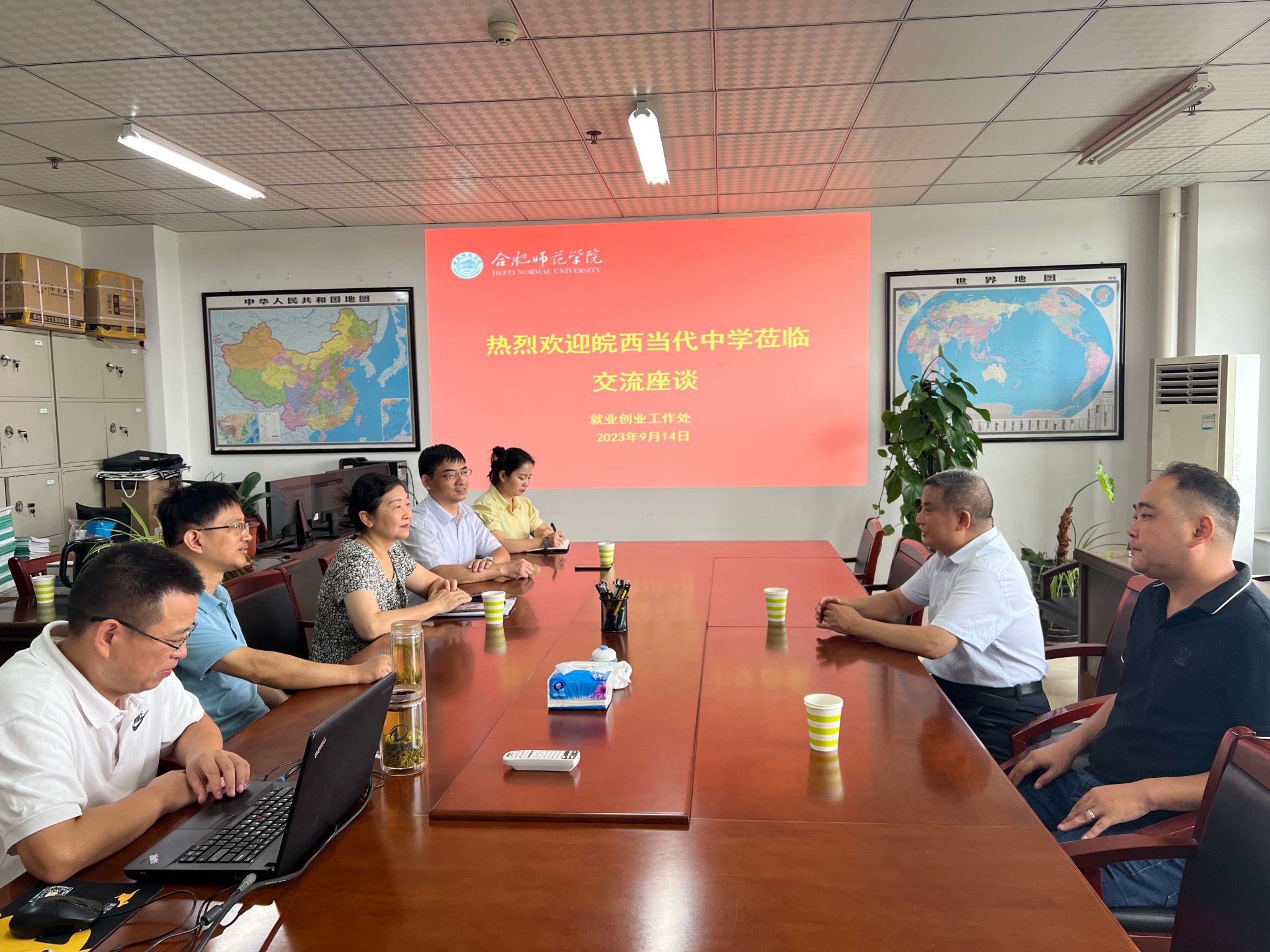 本网讯 9月14日上午,六安市皖西当代中学校长郭世珍一行莅临我院交流座谈并赠送锦旗。就业创业工作处处长李健、副处长张晖,化学与制药工程学院书记李红、副院长董雄辎及2023届毕业班辅导员出席座谈并交流发言。