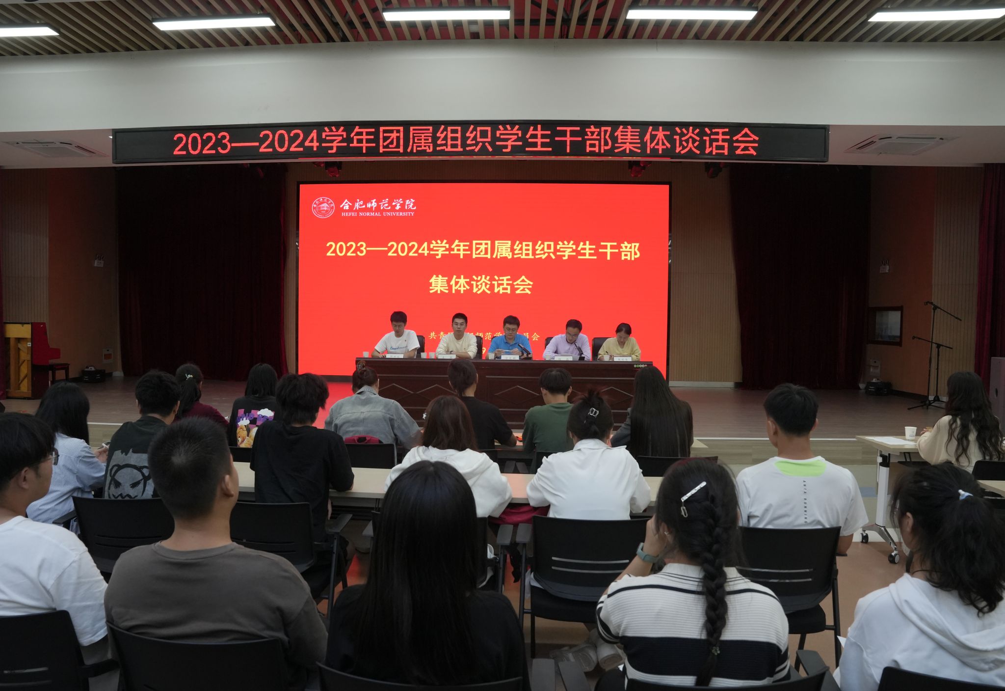 本网讯 9月12日,院团委以线上线下相结合的方式召开团委所属学生组织学生干部集体谈话会,院团委全体人员、院学生会、合师青年传媒中心、学生社团文化服务中心、青年志愿者联合会、“第二课堂”学分认证中心等组织新任主要学生干部参加会议。