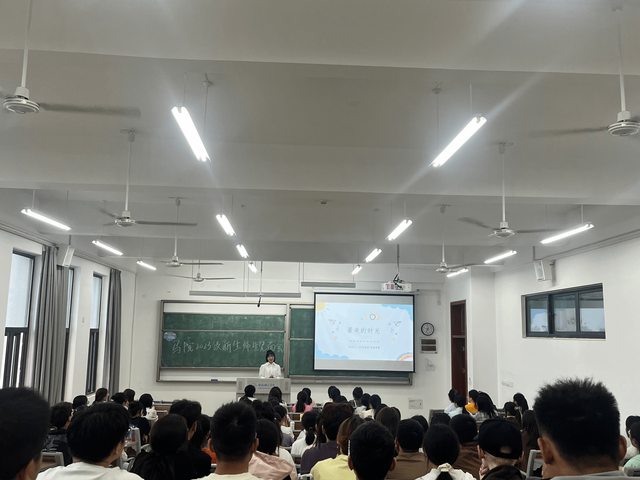 本网讯 新学期伊始,为进一步加强2023级新生对学院的认同感,尽快熟悉学院人才培养理念,适应大学的学习与生活,同时也增进新生与学院老师之间的师生感情,9月13日上午,马克思主义学院2023级新生师生见面会在滨湖校区铭传楼B304教室举办。会议由学院副院长方政主持,研究生教学部主任朱玉利、副教授王欣、副教授陈保同、新生辅导员王萌、优秀校友2010级思政班包丽蒙娜、两名优秀学生代表2021级思想政治教育班刘会龙和赵璟丽以及2023级全体新生共同参加。
