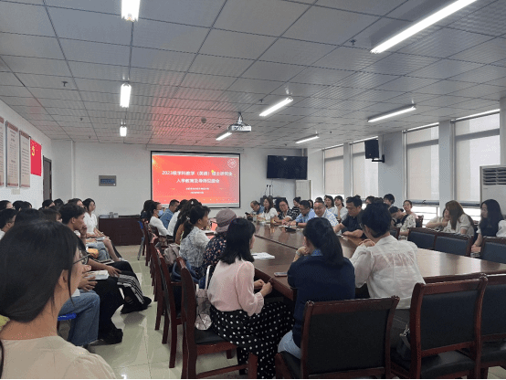 本网讯 为积极引导新生明确未来目标和发展方向,进一步增进师生交流,9月15日,外国语学院在行知楼1002会议室举行2023级学科教学(英语)硕士研究生入学教育暨导师见面会。外国语学院党委书记马四民、院长李可胜、党委副书记杨娜、副院长吴礼敬、国际交流与合作处副处长蒋道华,研究生班主任吕胜蓝,部分硕士生导师代表及全体2023级学科教学(英语)硕士研究生参加了本次会议。外国语学院研究生部主任强云主持本次会议。