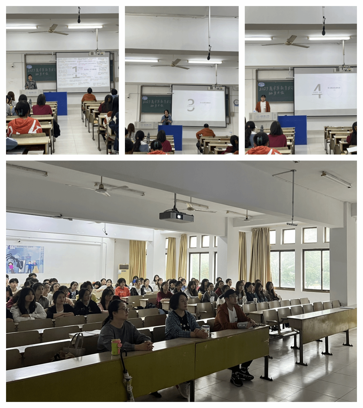 本网讯 为进一步落实2023年美术学教育实习工作,引导同学们做好实习的准备。9月22日,美术与设计学院在锦绣校区博约楼211教室召开了美术学教育实习动员大会。美术学教研室副主任马晴、美术学实习负责人孙哲、美术学实习指导老师戴晶晶,实习指导教师兼辅导员潘文锦和2021级美术学共86位实习学生参加会议。