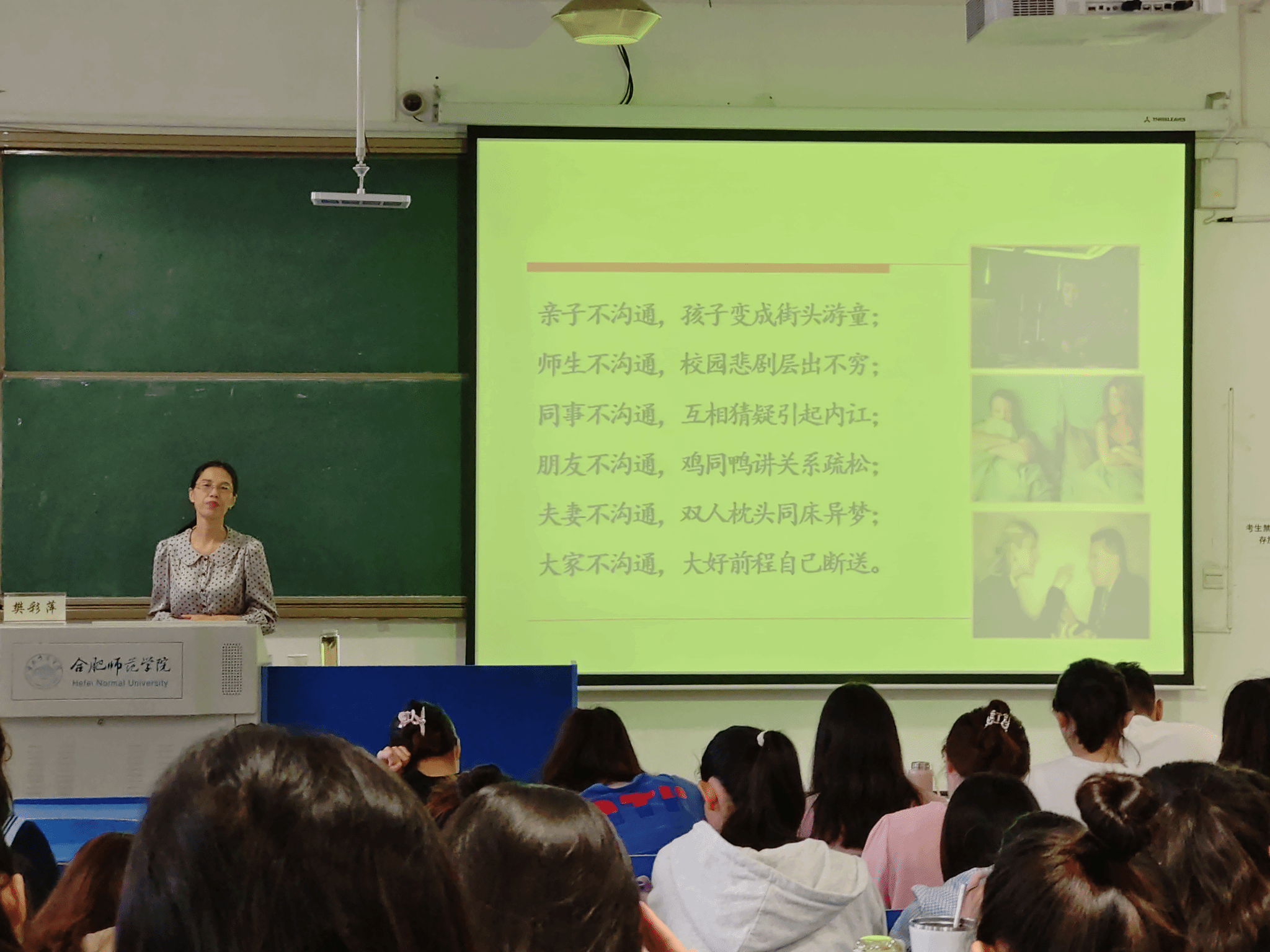 本网讯 为进一步提升小学教育师范生的沟通合作能力,促进实习工作的顺利开展,9月28日上午,教育心理科学学院在锦绣校区逸夫楼A201开展师范生核心素养交流指导活动。活动由副主任唐银主持,邀请教育心理科学学院教授樊彩萍开展《有效沟通成就智慧教师》主题交流活动。2021级小学教育专业全体学生参加此次活动。