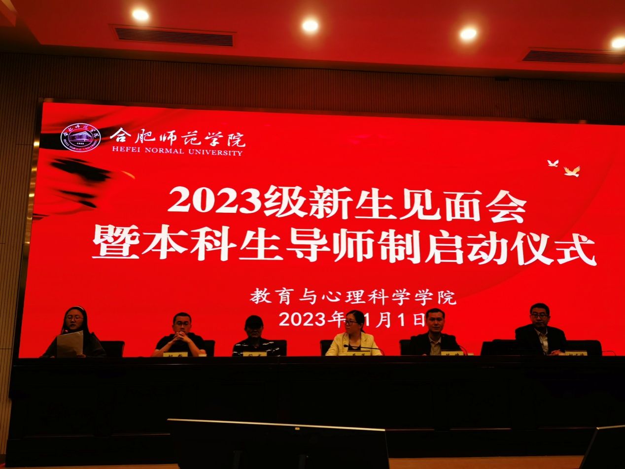 为进一步帮助2023级新生坚定理想信念、做好专业学习、开启职业规划,11月1日下午,教育与心理科学学院在滨湖校区学术报告厅举行2023级新生见面会暨本科生导师制启动仪式。教育与心理科学学院党委书记董萍,副院长闫龙、胡连峰、胡哲以及学院全体教师、2023级普本新生参加见面会暨启动仪式,会议由学院党委副书记陈帅主持。