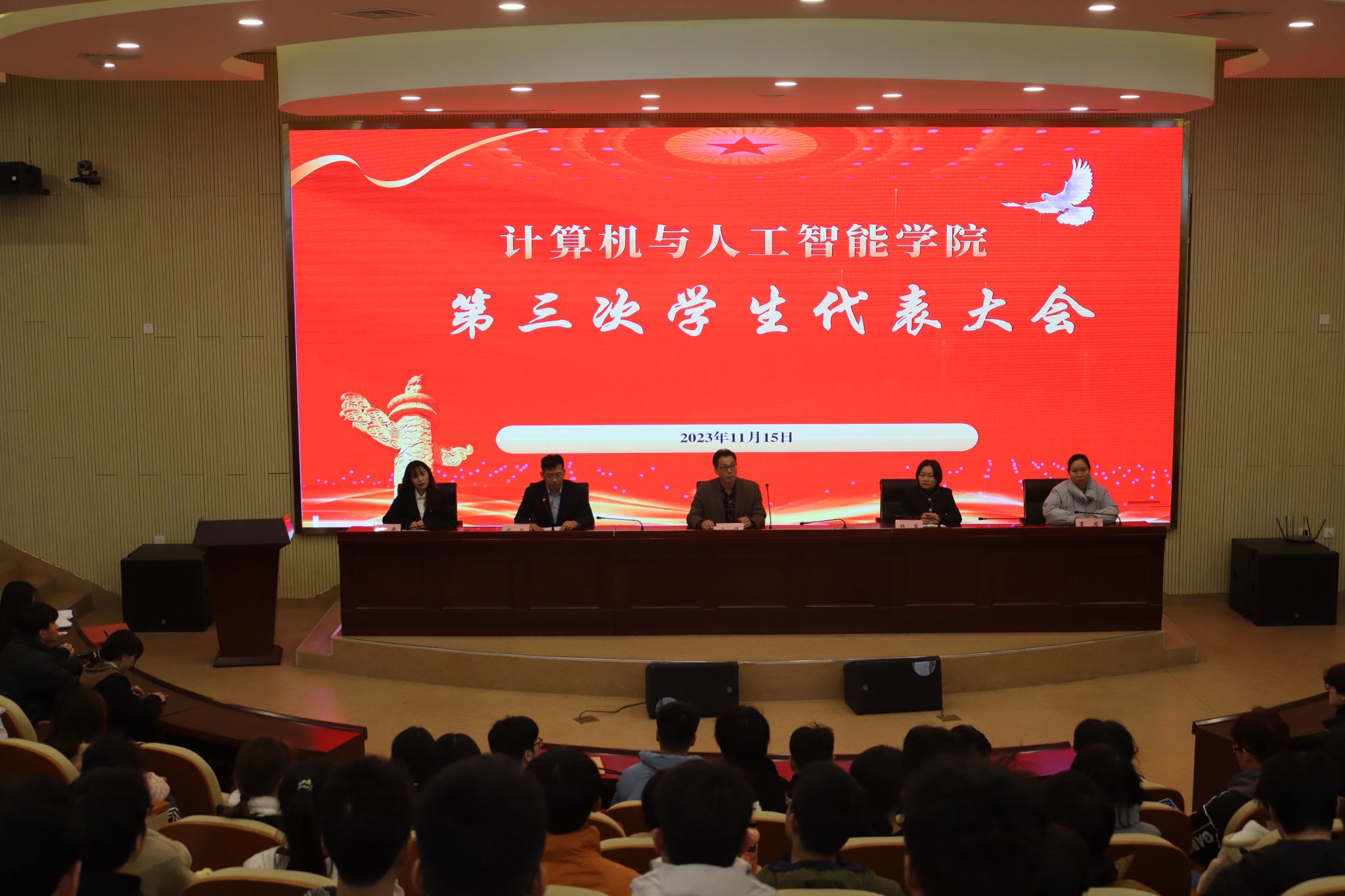 近日,计算机与人工智能学院第三次学生代表大会在滨湖校区铭传楼学术报告厅顺利召开。学院党委书记王祥、副书记杨萍,辅导员夏芳出席会议,上一届学生会主席团成员李柔及132学生代表参加大会。会议由院团委书记宗彪主持。