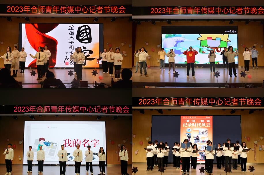 晚会为第五届记者节活动月系列活动中获奖选手颁奖,公布了合师青年传媒中心2022—2023学年度优秀作品评选结果。