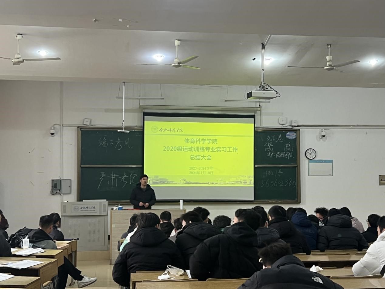 1月10日上午,体育科学学院2020级运动训练专业实习总结大会在博约楼101教室召开。运动训练系党支部书记陈秀、运动训练系副主任廖顺建、毕业班辅导员张康康及2020级运动训练专业全体学生参加总结大会。