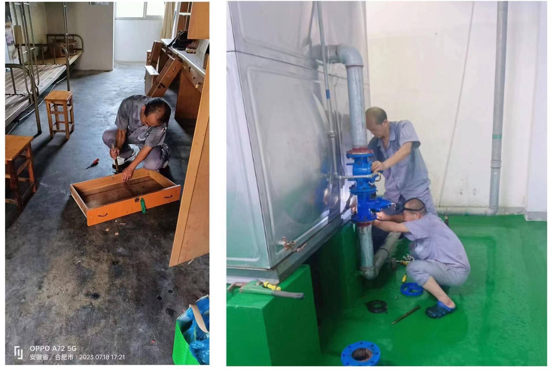 干“小事情”,解决“大问题”。小型维修保障校园顺利开展各项工作。 2023年,锦绣校区物业共计提供维修服务38200余起。修补地砖约200㎡,粉刷墙面约750㎡,水管保温350余米,清理化粪池计28次,疏通管道460余米……。