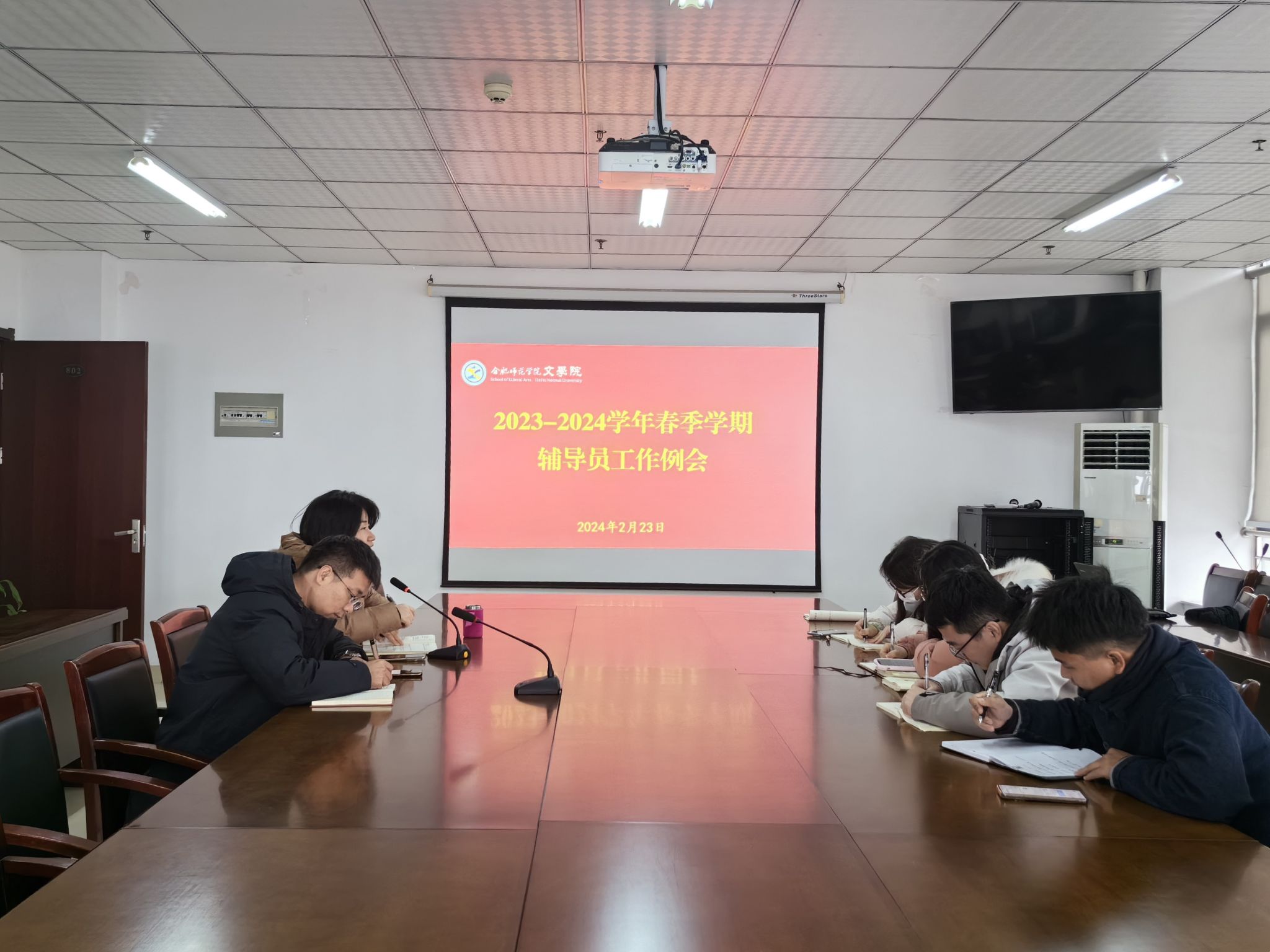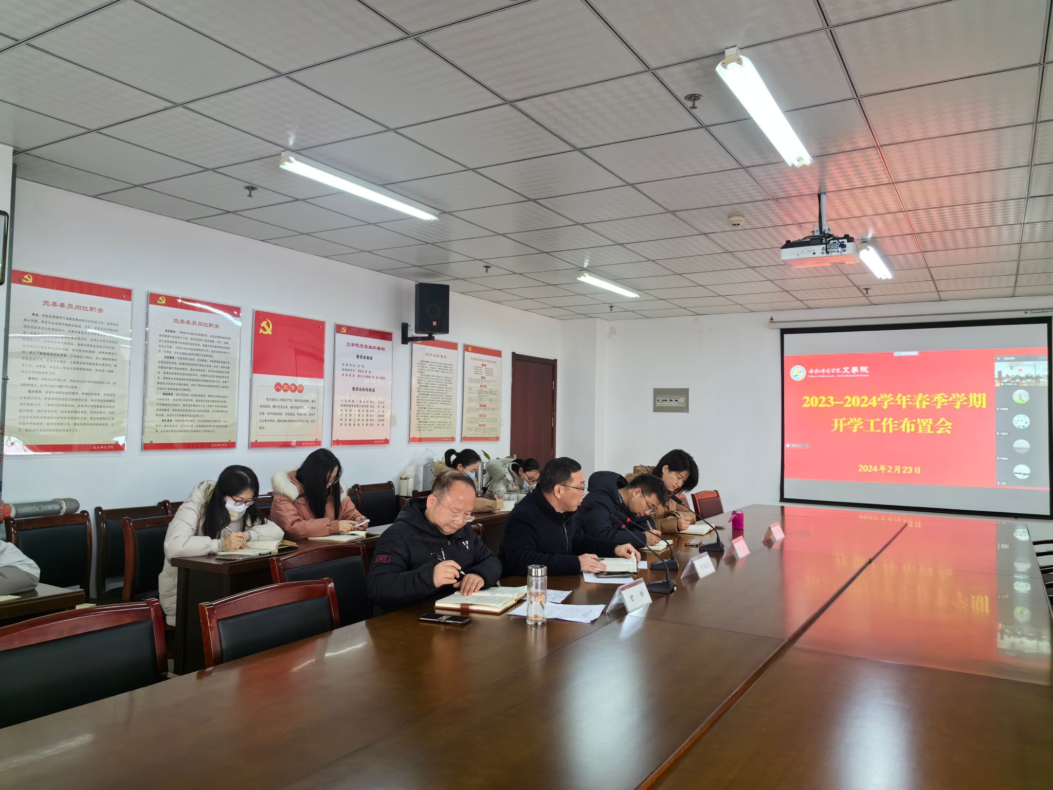 为了扎实做好新学期开学准备,确保开学各项工作顺利、有序进行,2月23日上午,文学院在行知楼802室召开2023-2024学年春季学期开学工作布置会,会议以线上线下结合的方式召开,院领导班子成员、全体教职工参加会议。会议由党委书记许锃主持。