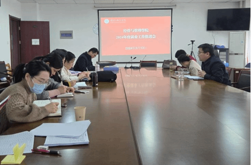 为了深入把握和研判当前就业形势,部署近期就业领域重点工作,全力做好2024届毕业生的就业工作,3月13日下午,经济与管理学院在行知楼902会议室召开2024年度毕业生就业工作推进会。学院领导班子成员,各系主任、毕业班全体辅导员参加会议。
