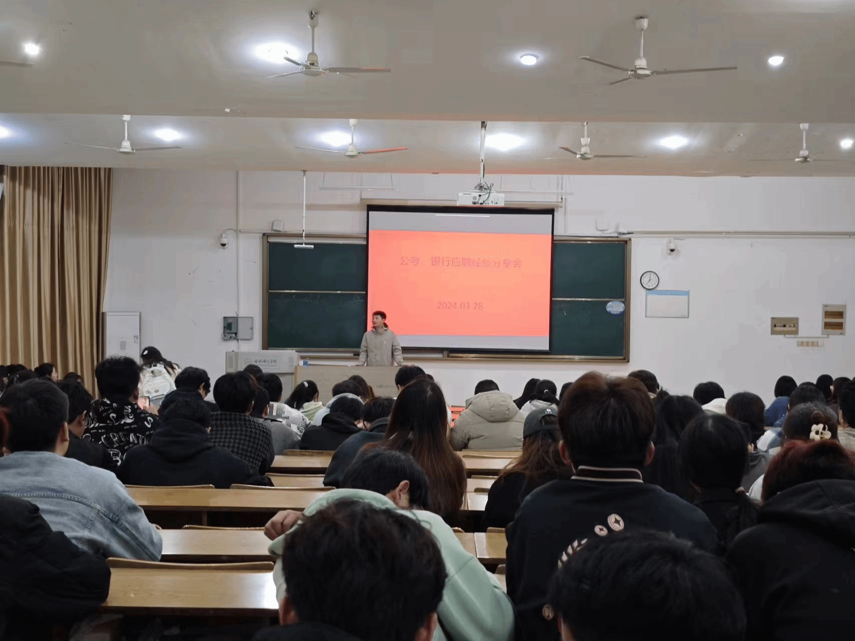 3月28日晚上,数学与统计学院在博约楼101举办考公经验分享会。会议邀请已录用公务员及签约银行就业的三名优秀同学做经验分享。数学与统计学院、经济与管理学院等八个学院200余名大三学生参加分享会。会议由数学与统计学院辅导员曾飞主持。