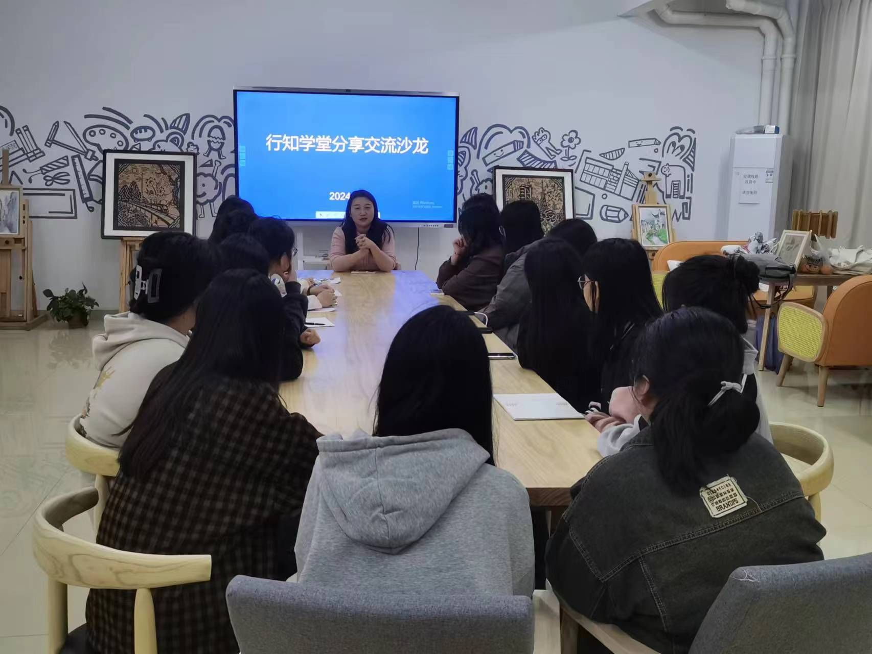 为进一步提升学院学生社会实践活动能力,4月4日晚,美术与设计学院在学校“一站式”学生社区(美术与设计学院CMYK调色工作室)开展行知学堂分享交流活动,辅导员戴玉佩老师、2022级在校生近20人参加交流活动。