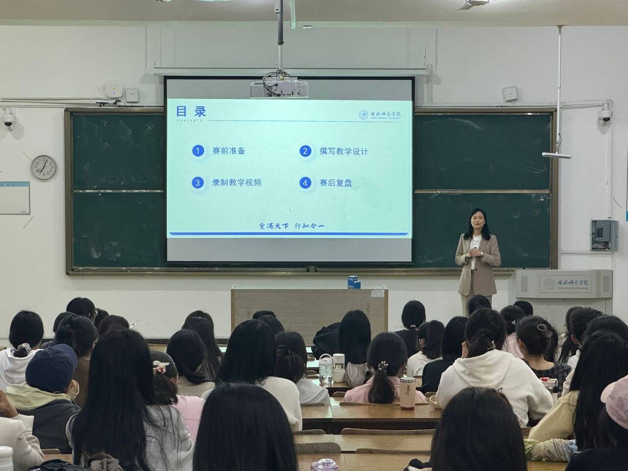 讲座现场座无虚席,气氛活跃。通过学习交流,同学们纷纷表示认识到了教学基本功的重要性,对接下来的参赛准备也更有信心和把握,今后将通过不懈努力,争取在未来的教学技能比赛中取得优异成绩。