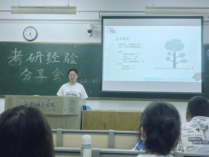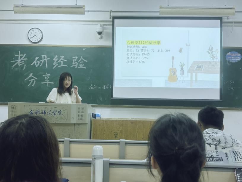 为进一步加强学风建设,充分发挥优秀学生的示范引领作用,帮助学生明确考研目标、掌握考研技巧、提升考研成功率, 5月8日晚,教育与心理科学学院心理系举办“研途有你”考研经验分享会,2021级应用心理学班全体学生参加会议。