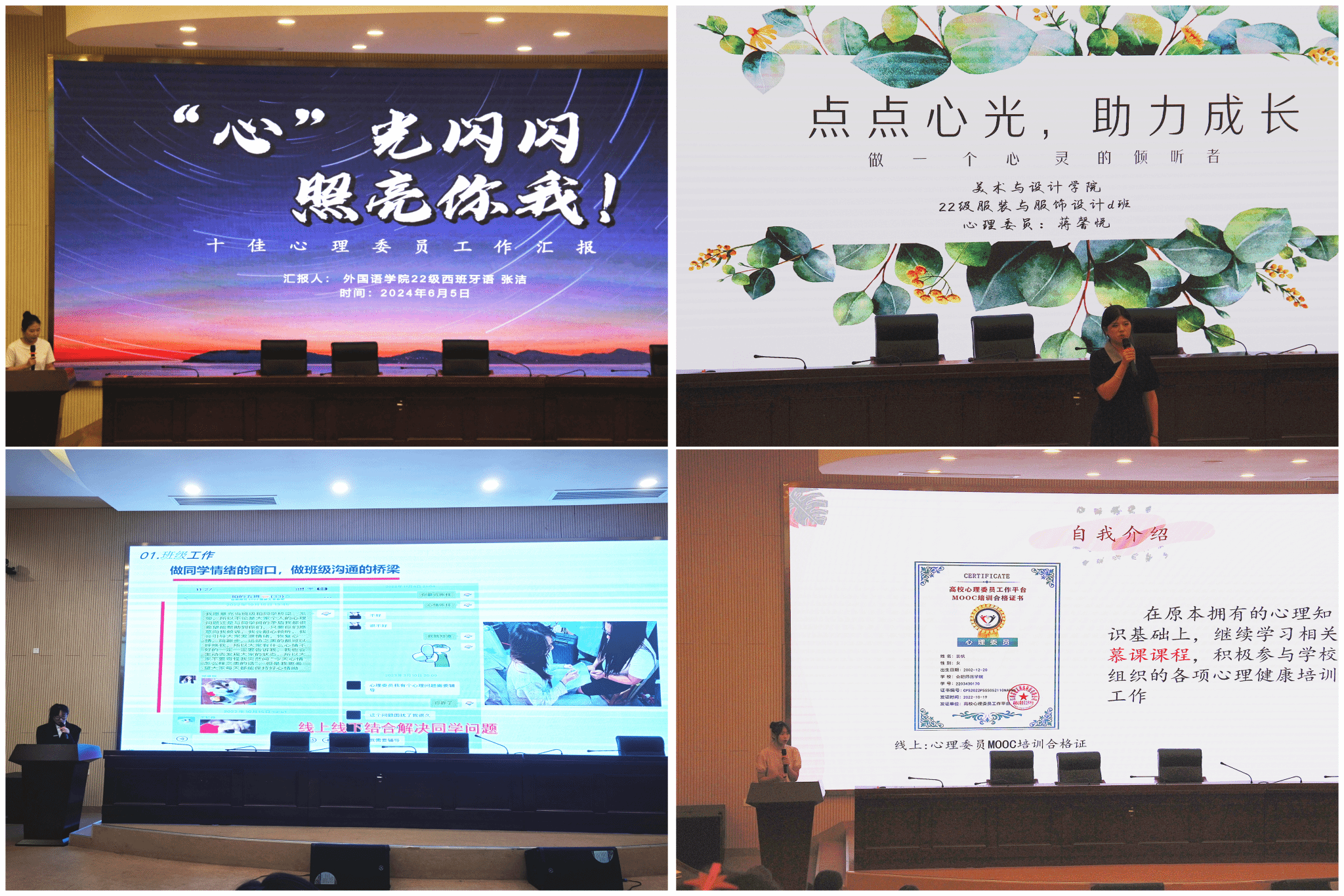 经各二级学院推荐,共14名心理委员进入“十佳心理委员”现场评选环节。评选交流会上,参评心理委员以PPT汇报的形式,围绕心理健康宣传、心理活动组织以及朋辈心理辅导等方面的经验和感悟进行了精彩的分享,全面汇报了一年来取得的工作成绩和工作成果,充分展现了专业助人技能和素养,展示了合师优秀心理委员的风采。