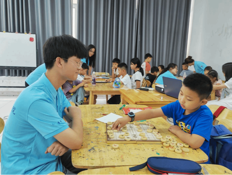 在随后的学堂活动中,小老师们实施的课程内容以生活为教材,以社会为课堂,给孩子们展现丰富的生活实践和兴趣课程,叶冉老师的“翩翩起舞”课,让孩子们随着音乐的节拍舞动,感受韵律带来的快乐;方洁老师的“妙笔生花”课,通过“夏天的味道”带同学们进入到夏日冰淇淋的美妙世界,同学们画的冰淇淋让老师们赞不绝口;张城老师的“楚河汉界”课,让同学们感受到传统文化的美妙和创新思维的魅力。
