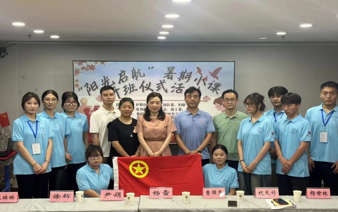 7月15日,经济与管理学院鲁园社区“行知学堂”正式开班,鲁园社区街道总工会党委书记、全国劳模代表徐辉、学堂指导老师曹国志,10名小先生、17位小学员及家长代表到场参加。
