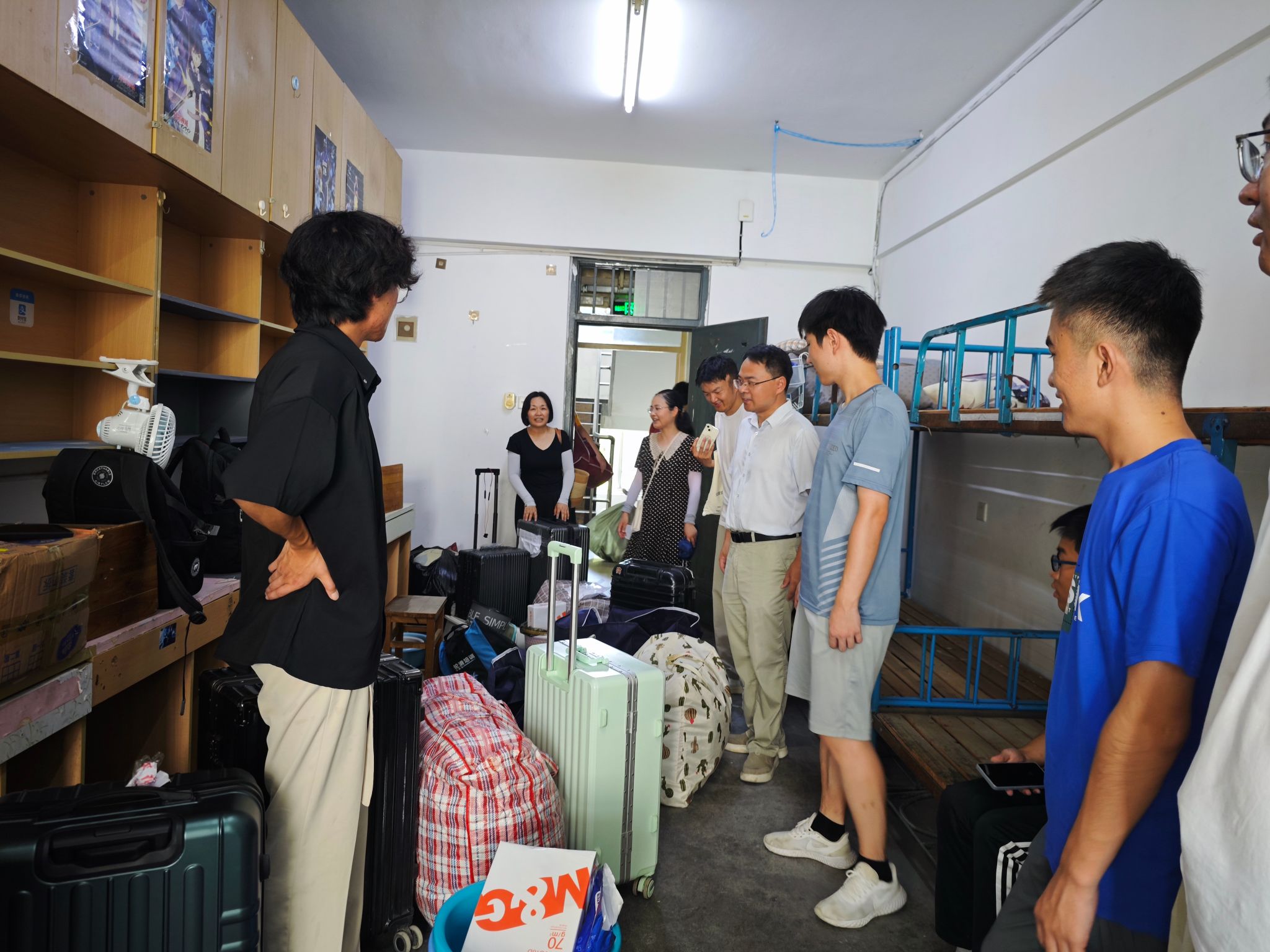 搬迁结束后,学院领导和2022级辅导员走访学生宿舍,仔细察看了宿舍设施和寝室家具,并与同学们亲切交谈,了解各种设施是否可以正常使用,询问同学们是否有生活上的困难,叮嘱同学们要尽快适应新环境,调整学习和生活状态,室友之间要和谐相处、互帮互助。