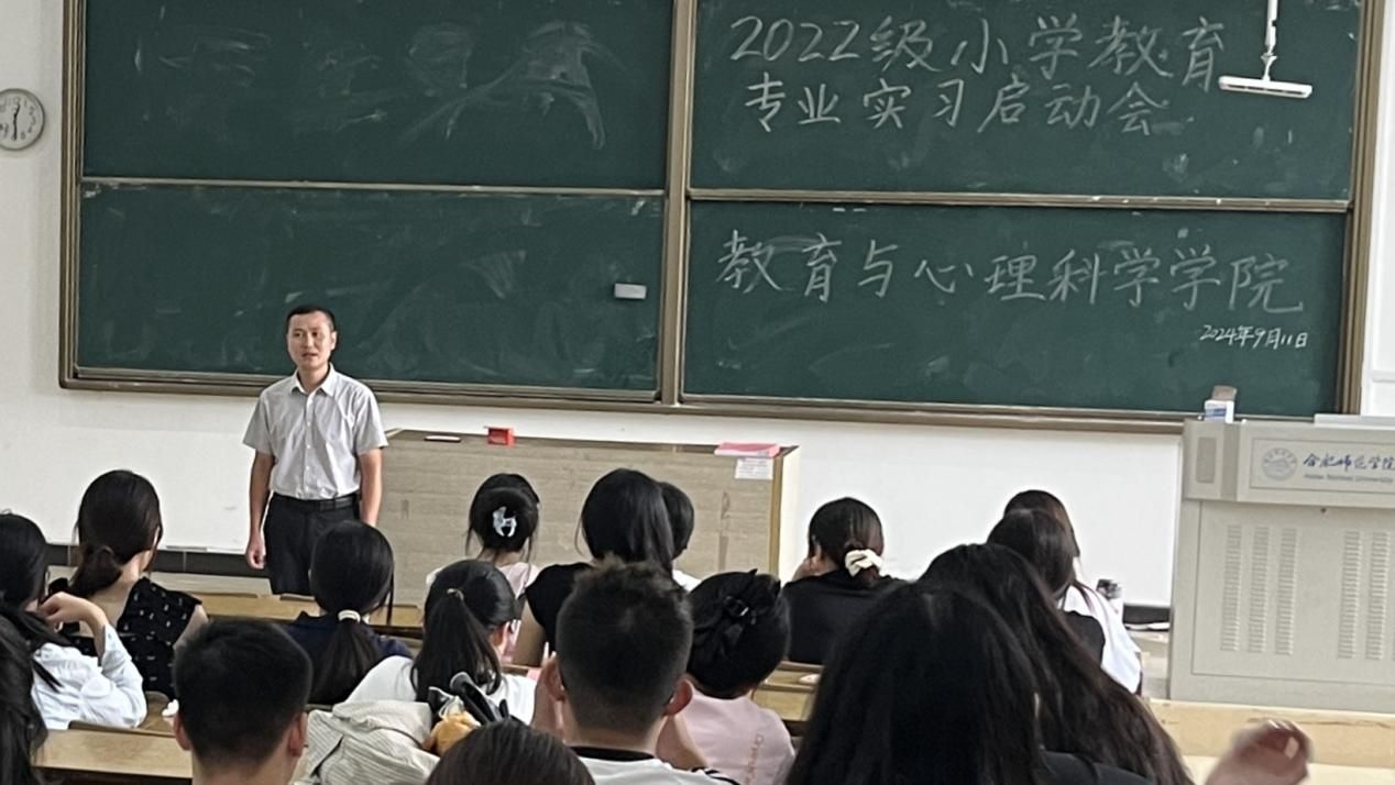 为全面提升学生的综合素养和专业技能,9月11日中午,教育与心理科学学院在锦绣校区博约楼108教室组织召开2022级小学教育专业实习启动会。教育与心理科学学院党委副书记陈帅帅、教育系副主任唐银、实习指导老师及参与实习的全体学生参加了本次实习启动会,会议由唐银主持。