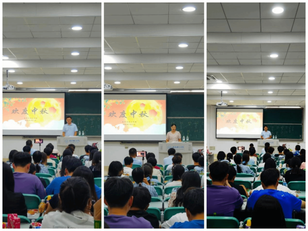 平分秋色一轮满,长伴云衢千里明。穆娟代表学院给同学和家人们送上了中秋的节日祝福。她对现场热烈的气氛和同学们饱满的热情予以了肯定和赞扬。穆娟表示,大学是人生中的黄金时期,同学们要牢牢把握机遇,明确大学规划,养成自我学习、自我教育、自我管理的良好习惯,要努力实践,积极作为,用自己的奋斗和拼搏铸就美好的明天。同时她也提醒同学们在这个团聚的日子里,一定要给父母打个电话,报个平安送上节日祝福。