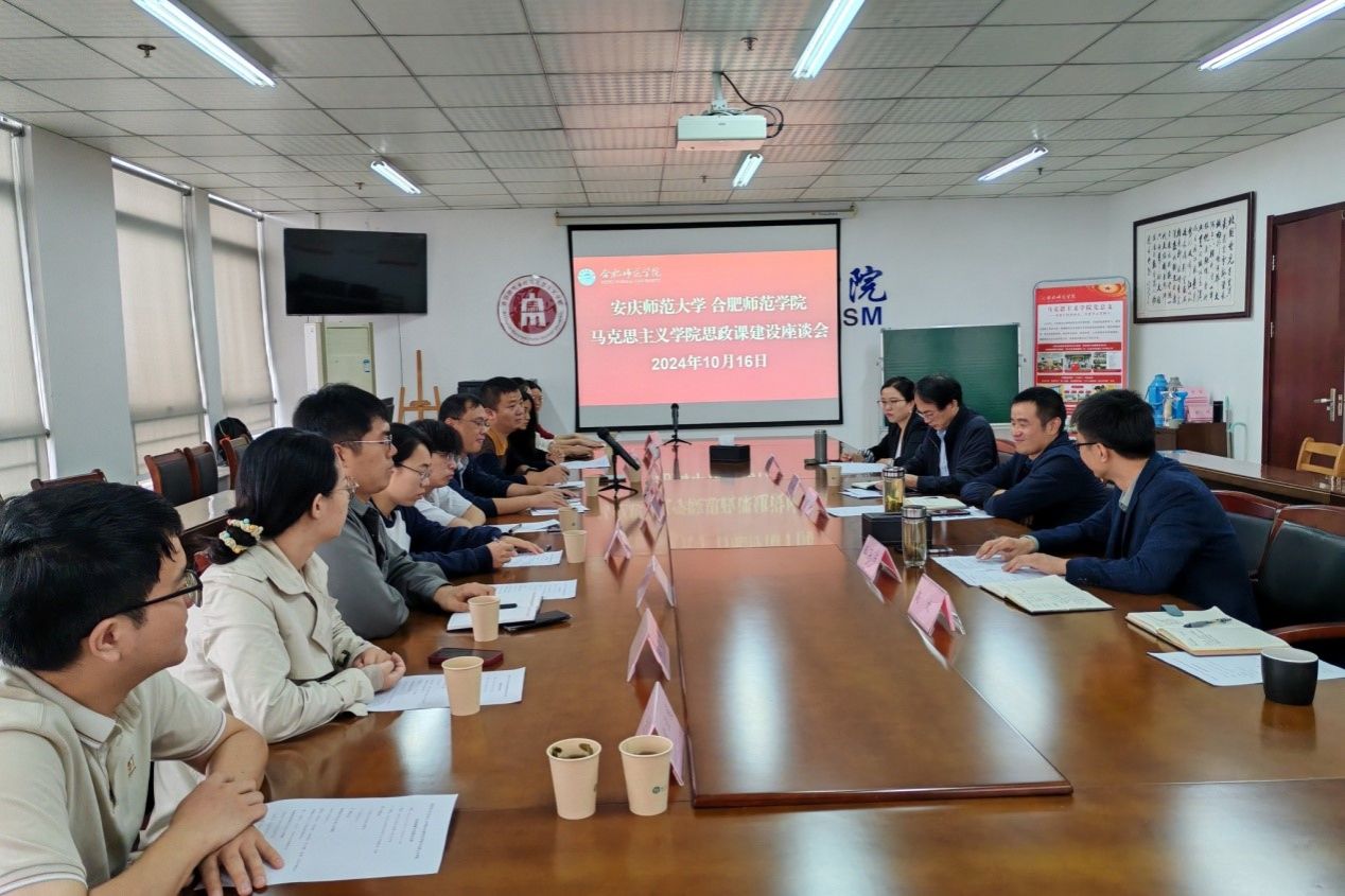 方政首先对余江舟一行来访表示欢迎,并围绕一课四备、一课多师、学情调查、教学方法创新、实践教学等方面详细介绍了我院思想政治理论课建设情况。吴世红介绍了学院党建工作、人才培养、学生就业等情况。余江舟详细介绍了安庆师范大学马克思主义学院思政课建设的特色做法和成效。