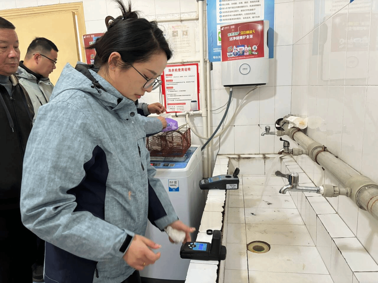 此次检测活动,学院职能部门和师生10余名代表一同参与了检测活动。工作人员严格按照标准流程操作,在锦绣校区4个取水点、滨湖校区3个取水点进行水质采样,并将检测结果第一时间在学生公寓进行公示。