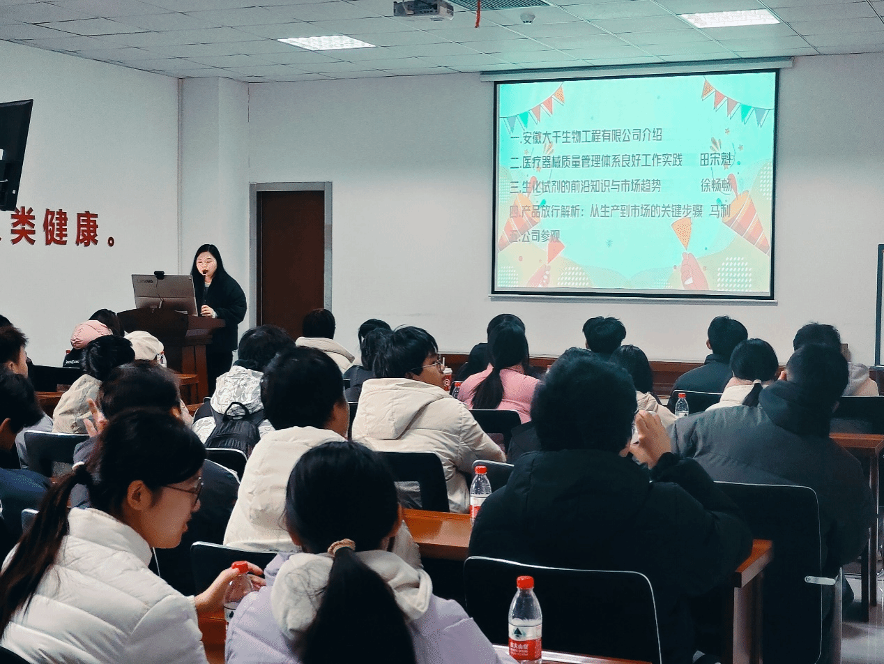 企业负责人向同学们介绍了公司的发展历程、核心业务、市场布局以及未来规划,使同学们对生物医药企业的运作模式和前沿技术有了直观的了解。同学们在企业工作人员的带领下有序参观了公司的实验室,同学们近距离观察了先进的实验设备和生产线,感受到科技创新在生物制药领域的实际应用。