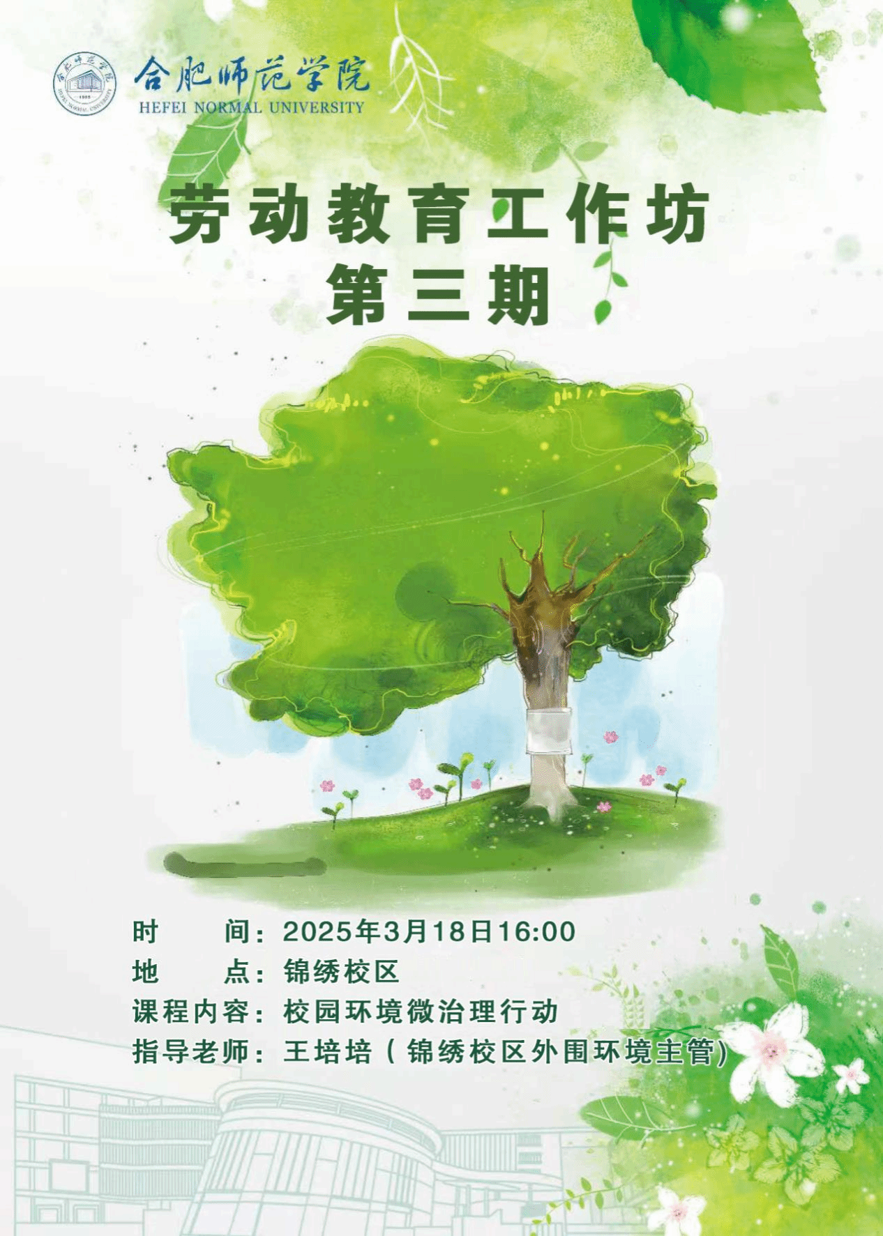 为深入贯彻落实新时代劳动教育方针,引导学生树立正确的劳动观念,3月18日下午,后勤处联合教务处和部分学院在锦绣校区开展了以"一石一木筑匠心,一花一草见成长"为主题的劳动实践活动,将劳动教育与校园环境建设有机结合,吸引了众多学生积极参与。