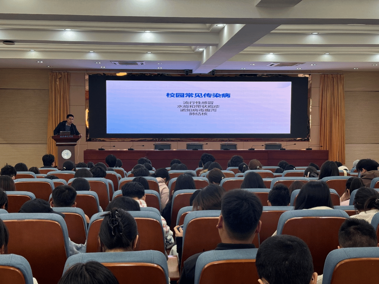 梁冬以《预防春季流行性病毒感染》为题,结合春季常见的病毒感染症状,深入浅出地讲解了预防水疱、带状疱疹、诺如病毒等实用知识,并针对大学生经常熬夜现象等存在健康隐患的行为习惯提出科学建议,现场互动频频,反响热烈。