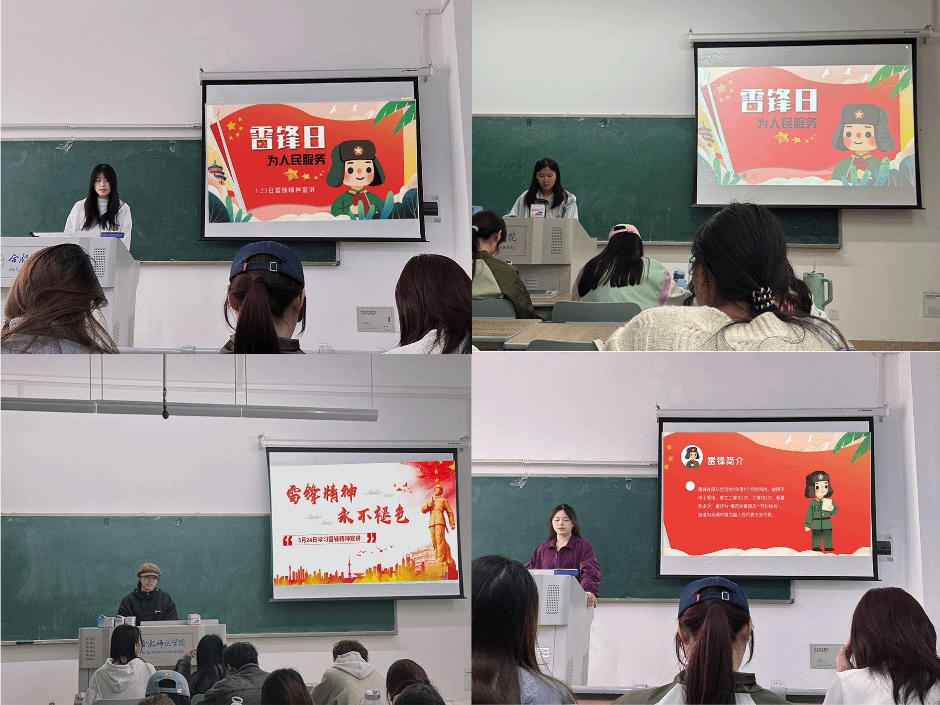 3月22日至23日,借助2024级新生晚自习时间,文学院“学雷锋精神”宣讲团队分赴5个班级展开宣讲,围绕“忠诚、坚韧、敬业、豁达、感恩”五个关键词,广泛搜集与雷锋同志相关的珍贵采访画面和鲜活生动的事迹案例,精心制作了宣讲PPT,全面回顾了雷锋同志克己奉公的感人事迹,再现了革命先辈坚如磐石的政治信仰。宣讲过程中,结合青年责任担当与青春实践,号召同学们从身边小事做起,将雷锋精神融入日常学习生活,践行“奉献、友爱、互助、进步”的志愿精神。活动现场,同学们认真聆听,积极互动,掌声连连。