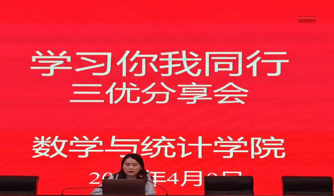 为深化数学与统计学院学风建设成效,进一步营造“比学赶帮超”的学术氛围。4月9日下午,数学与统计学院在滨湖校区学术报告厅举办“优良学风分享会”活动。2023-2024学年十佳优良学风先进个人桂仲妍、十佳优良学风宿舍代表黄子倩和十佳优良学风班级代表陈红进行分享,2023级、2024级200余名学生参加。活动由辅导员刘全亚主持。