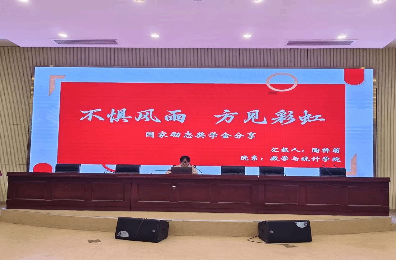 为充分发挥优秀学生的榜样引领作用,激励广大学子勤奋学习、追求卓越,4月9日下午,数学与统计学院在滨湖校区学术报告厅举办国家奖学金、国家励志奖学金经验分享会。2023-2024学年国家奖学金获得者杨雨洁、国家励志奖学金获得者陶梓萌进行分享,2023级、2024级200余名同学参加。活动由辅导员刘全亚主持。