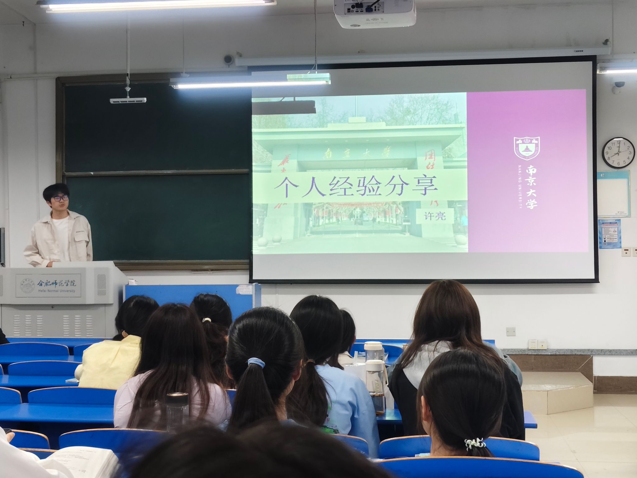 会中,考取浙江工业大学的葛利婷同学,考取合肥工业大学的曹芷瑞同学、刘柏君同学,考取南昌大学的吕迪迪同学和考取南京大学的许亮同学依次分享了考研学校专业选择、初试复试流程、复习进度安排以及学习技巧等备考经验。在沙龙尾声的互动答疑环节,同学们围绕“跨专业考研如何准备”“考研复试的注意事项”“如何平衡实习与考研复习”等问题踊跃提问,学长学姐们耐心细致地逐一解答,现场气氛热烈。参会学生纷纷表示,此次活动犹如一场及时雨,为自己理清了考研思路,增强了备考信心。