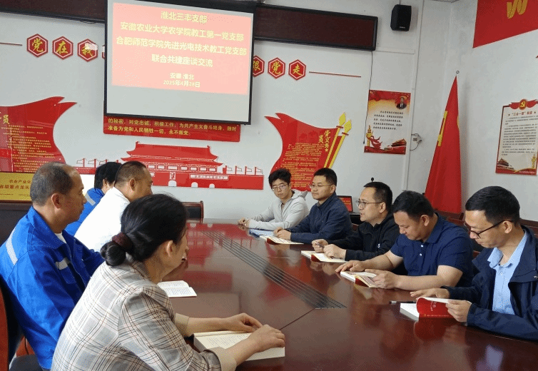 为深入贯彻落实党的二十大精神,推动党建与业务深度融合,探索“党建引领+科技赋能”创新模式,4月28日上午,先进光电技术教工党支部一行赴淮北市濉溪县,与安徽农业大学农学院教工第一党支部、淮北三丰肥业有限公司党支部开展党建联建暨座谈交流。淮北三丰肥业有限公司党支部书记周海然主持座谈会。